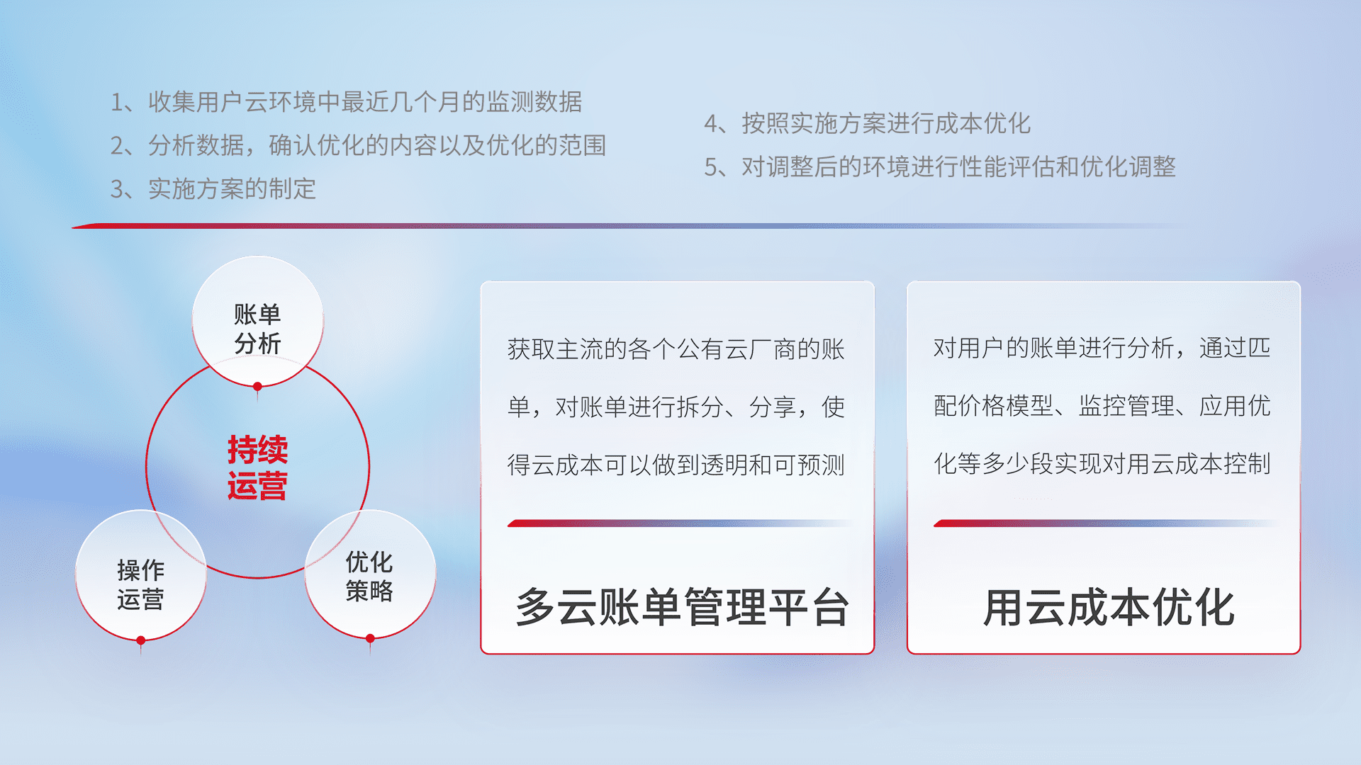 运用智能化工具分析云资源,,提供日常费用可视化工具,,,,自动账单拆分,,,,成本优化云上费用,,,降本增效。。。。